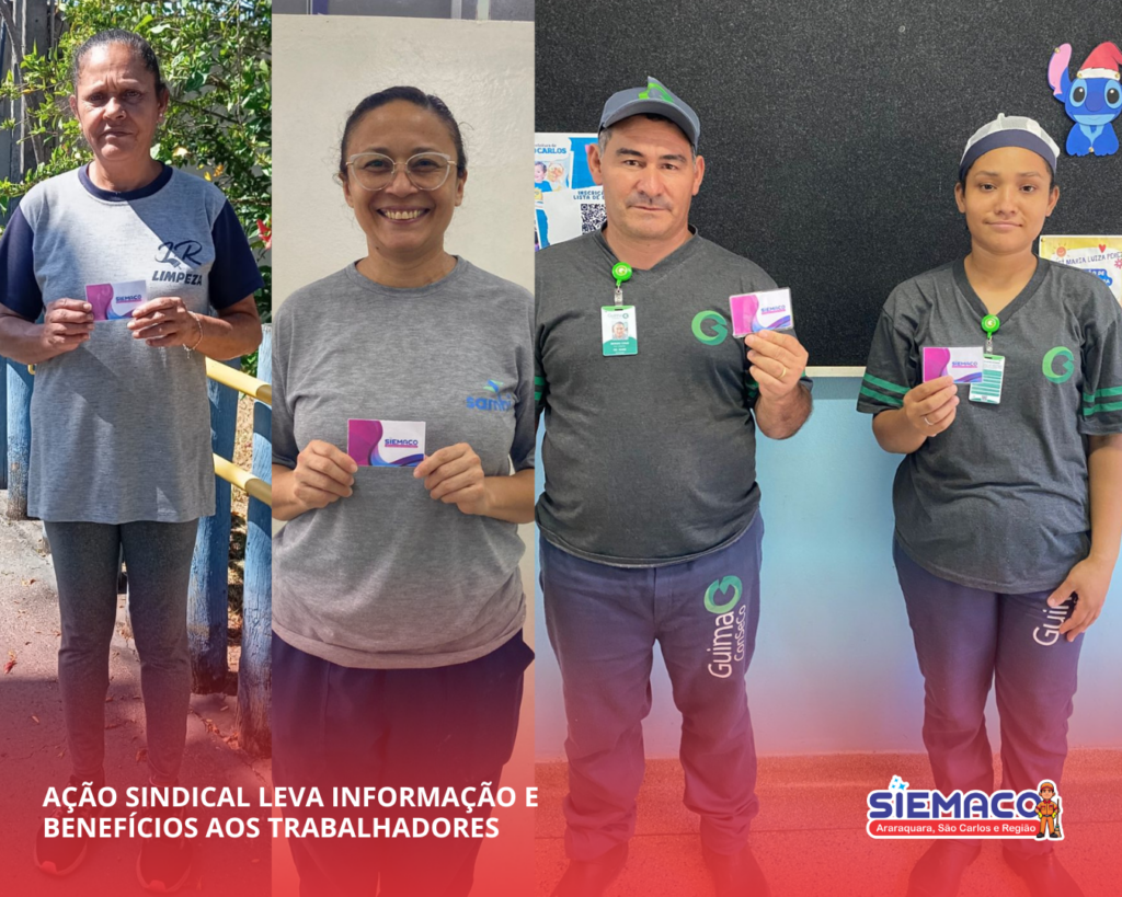 O SIEMACO Araraquara realizou visitas em diferentes setores, fortalecendo o contato direto com os trabalhadores e levando informação, orientação e benefícios até os locais de trabalho. Na empresa Guima Conseco, no setor da Escola Maria Luiza Peres, e na empresa Samhi, no setor da UBS Jardim Paulistano, foram realizadas entregas de carteirinhas de associado, garantindo o acesso dos trabalhadores aos benefícios oferecidos pelo sindicato.