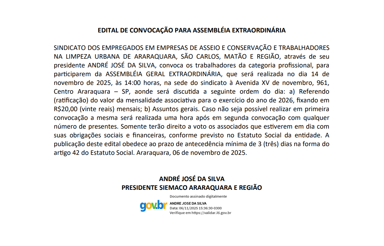 Av. 15 de Novembro, 961 – Centro, Araraquara/SP | CEP: 14801-030 | Telefone (16) 3333-6898 | Whatsapp (16) 99619-7939