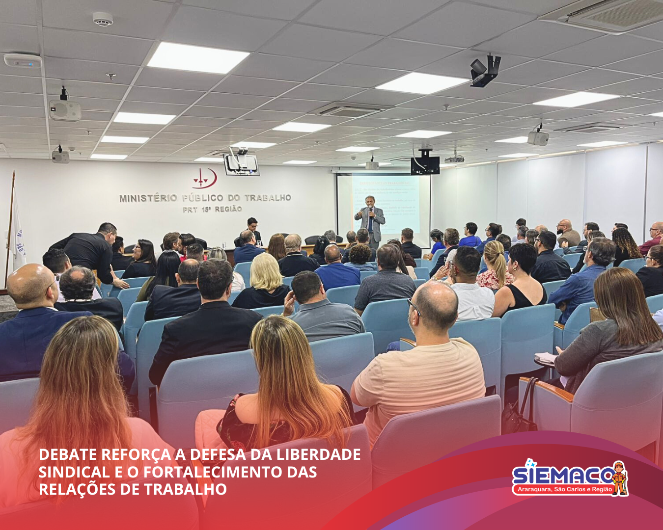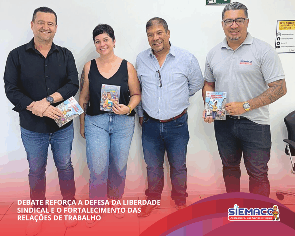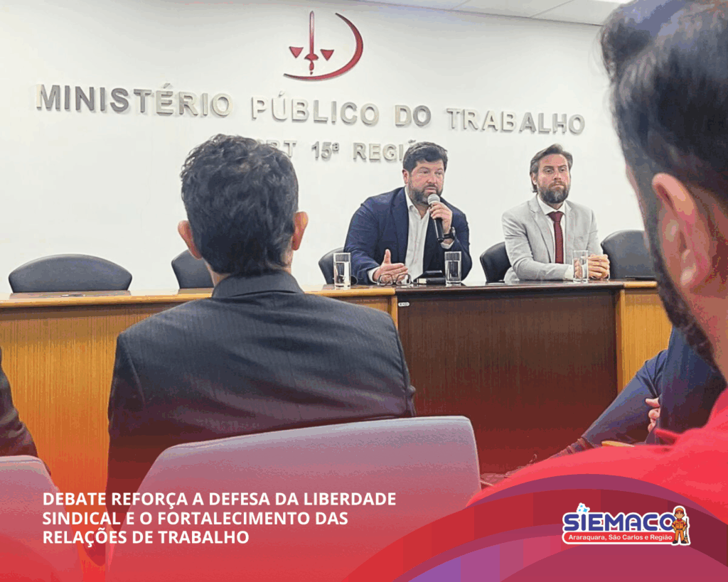 O SIEMACO Araraquara marcou presença no debate “Desafios atuais na defesa da liberdade sindical”, realizado nesta quarta-feira na Procuradoria Regional do Trabalho, em Campinas. O encontro reuniu procuradores, especialistas e lideranças para analisar os desafios na proteção da liberdade sindical, o papel do MPT e as estratégias de combate às práticas antissindicais. As discussões destacaram a importância de fortalecer os sindicatos diante das mudanças no mundo do trabalho, garantindo relações laborais mais justas e democráticas para todos os trabalhadores.