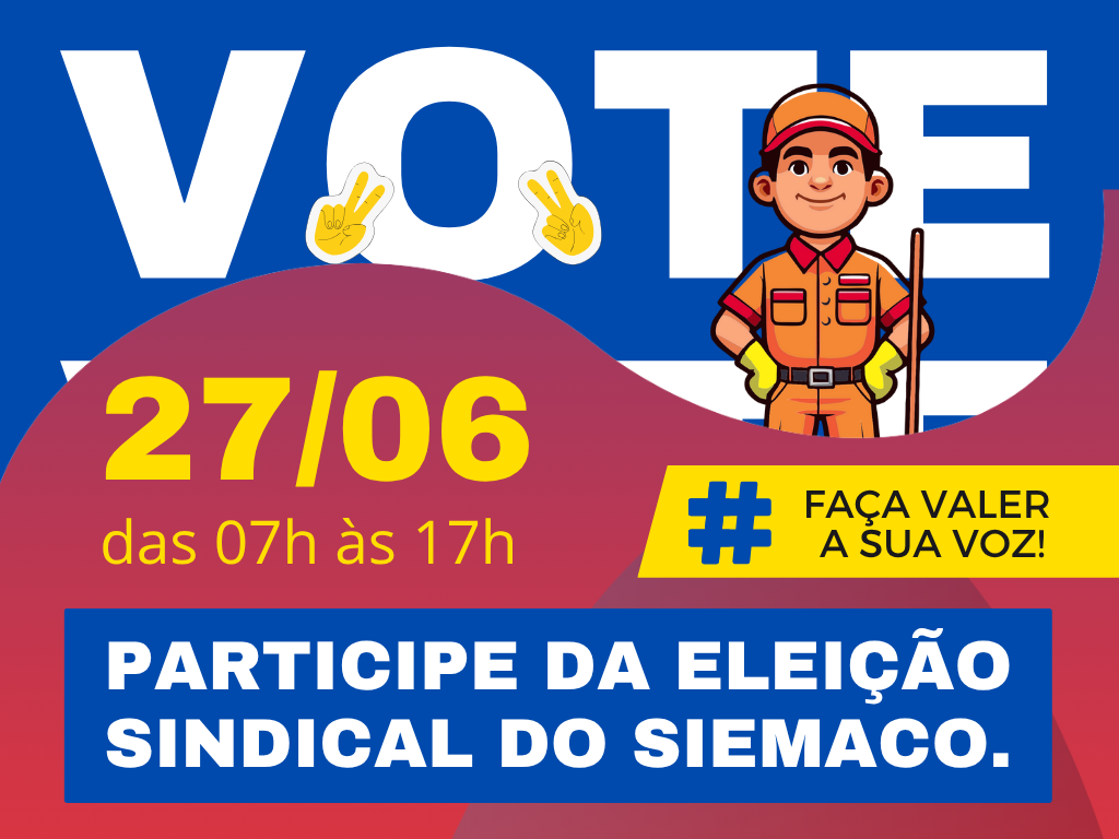 O SIEMACO Araraquara, São Carlos, Matão e Região convoca todos os trabalhadores filiados das áreas de asseio, conservação, áreas verdes, controle de pragas e limpeza urbana para a votação da eleição sindical, que acontecerá no dia 27 de junho de 2025, das 07h às 17h.