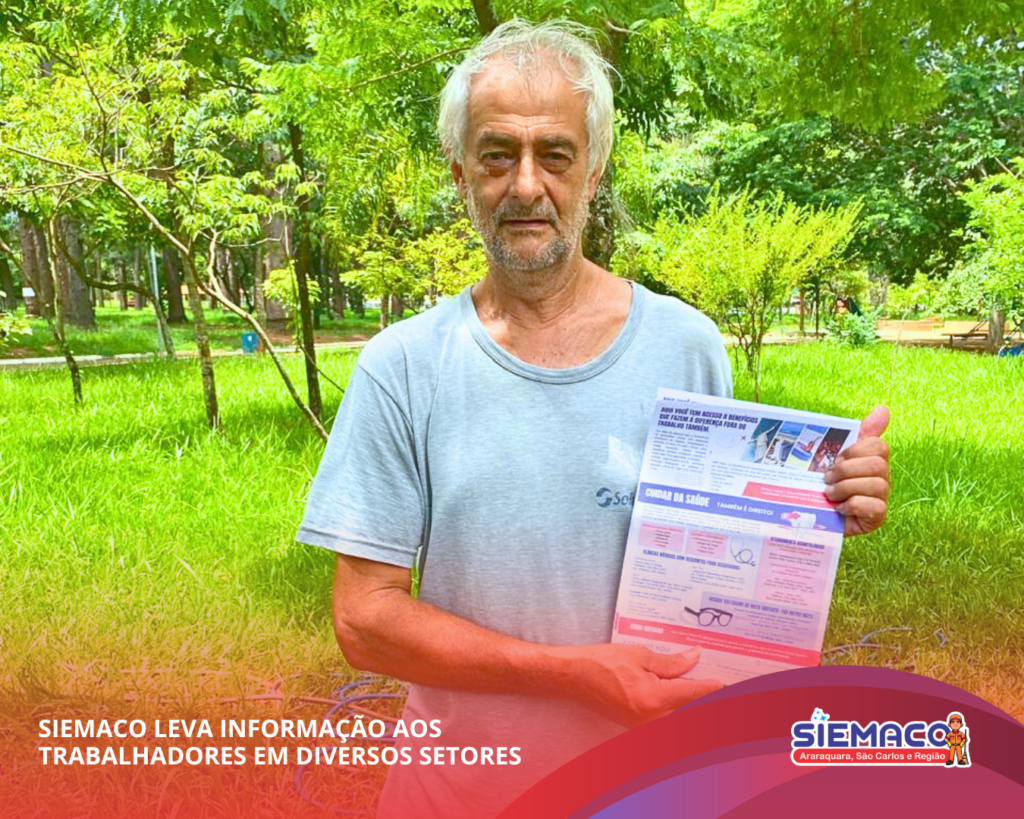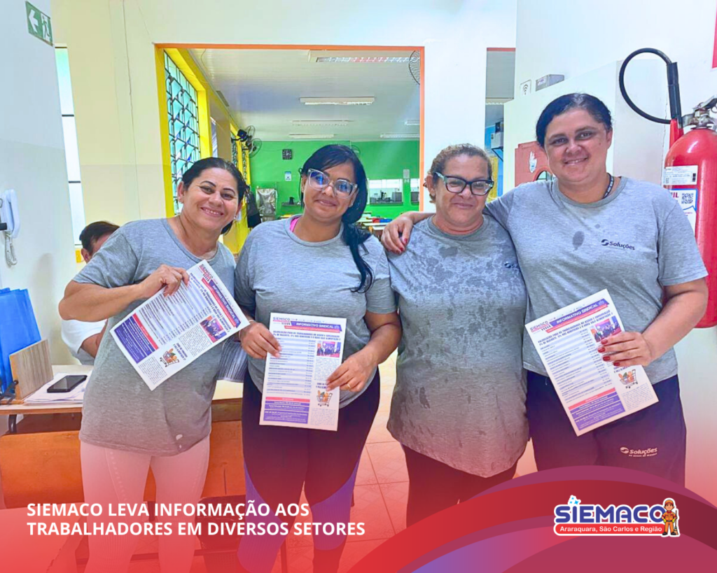 O SIEMACO Araraquara esteve presente levando informação, orientação e diálogo aos trabalhadores da Escola Anglo, Parque do Botânico, Posto de Saúde Maria Luiza, CER Maria da Glória e CER Zilda. A ação reforça o compromisso do sindicato em estar próximo da base, garantindo que os trabalhadores tenham acesso às principais informações, direitos e benefícios da categoria.