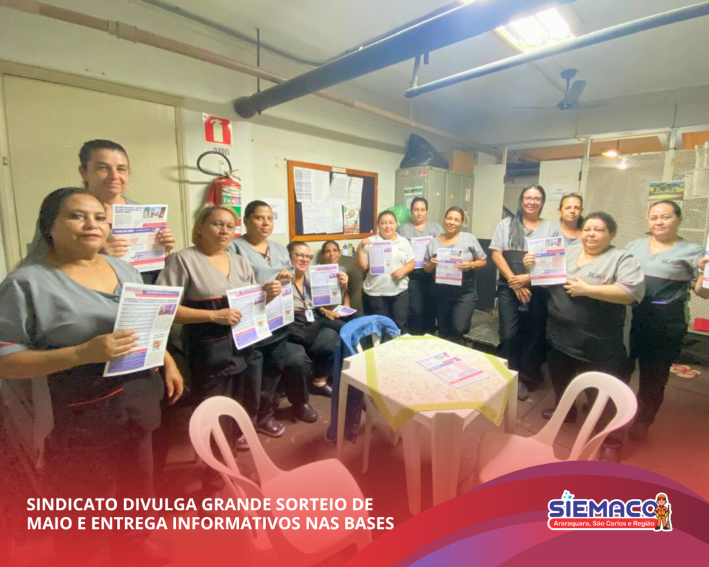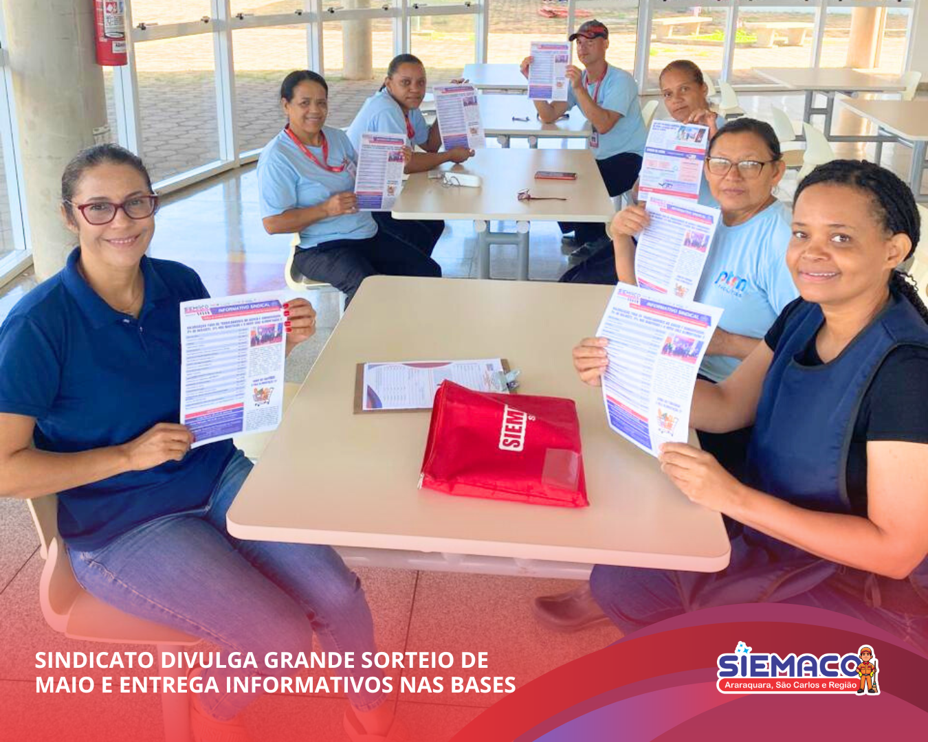 O SIEMACO Araraquara esteve na Fatec Araraquara e na Unesp Odonto Araraquara realizando visitas para divulgar o grande sorteio especial do mês de maio, em comemoração ao mês do trabalhador. Durante a ação, também foi feita a entrega do Informativo Sindical, destacando os principais avanços e conquistas da categoria neste ano.