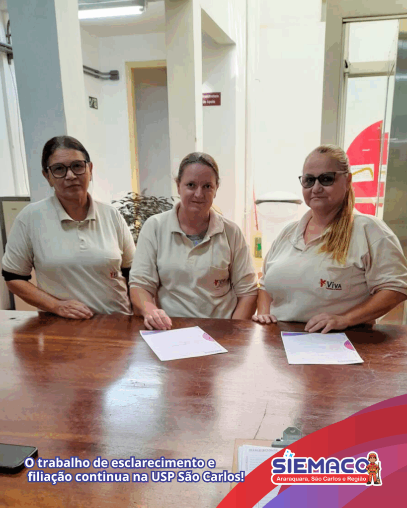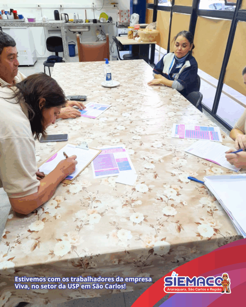 O SIEMACO Araraquara, São Carlos e Região segue firme com o trabalho de base junto aos trabalhadores. Nesta semana, estivemos no setor da USP em São Carlos, conversando com os trabalhadores da empresa Viva. A ação teve como foco o esclarecimento de dúvidas e novas filiações, reforçando a importância de estar bem informado e amparado pelo sindicato.